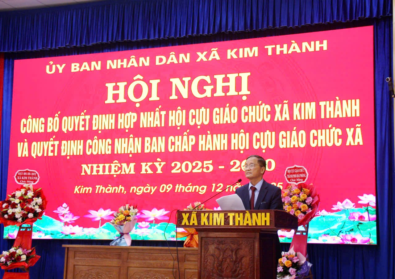 Ngày 09/12, tại Hội trường UBND xã, Đảng ủy - HĐND - UBND - Ủy ban MTTQ Việt Nam xã Kim Thành trang trọng tổ chức Hội nghị công bố Quyết định về việc hợp nhất và công nhận Ban Chấp hành Hội Cựu giáo chức xã Kim Thành nhiệm kỳ 2025 - 2030. Đây là sự kiện có ý nghĩa quan trọng nhằm kiện toàn tổ chức hội, đáp ứng yêu cầu nhiệm vụ trong giai đoạn mới.