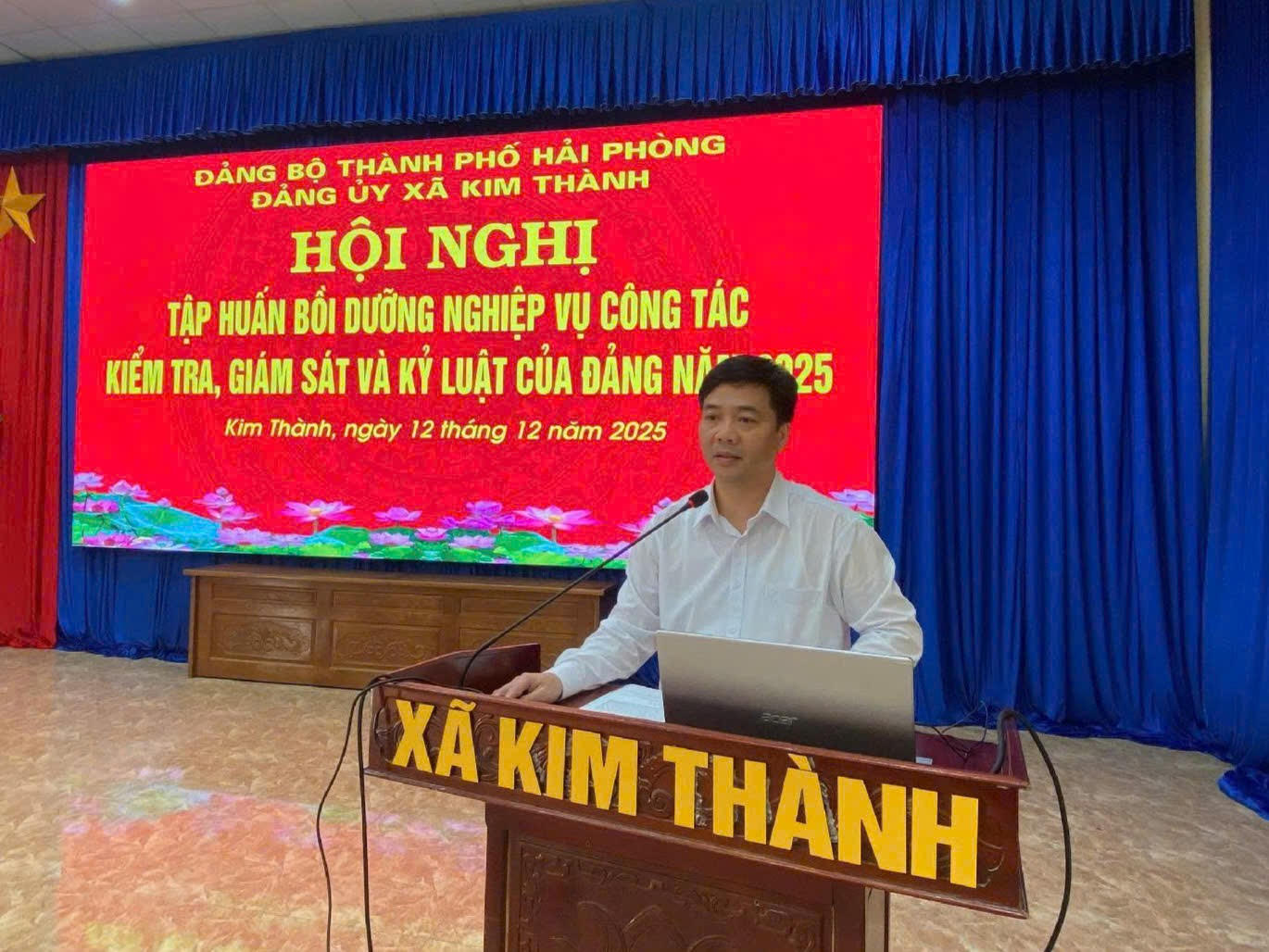 Sáng 12/12/2025, Đảng ủy xã Kim Thành đã tổ chức Hội nghị tập huấn bồi dưỡng nghiệp vụ công tác kiểm tra, giám sát và kỷ luật của Đảng năm 2025 cho đội ngũ cấp ủy viên, cán bộ làm công tác kiểm tra ở các chi bộ trực thuộc. Hội nghị vinh dự được đồng chí Nguyễn Hải Bình - Phó Chủ nhiệm Ủy ban kiểm tra Thành ủy về dự và trực tiếp truyền đạt các nội dung trọng tâm.