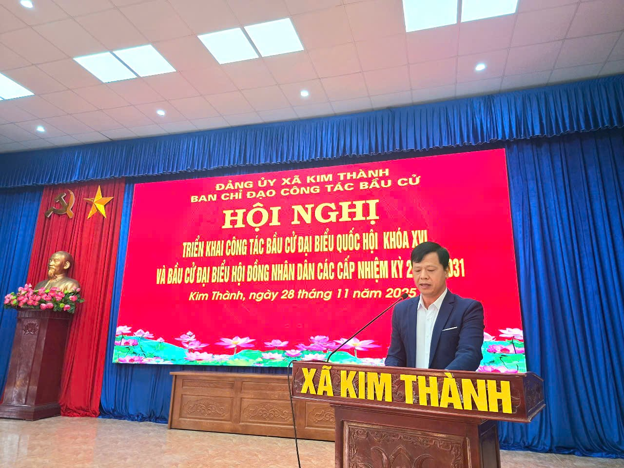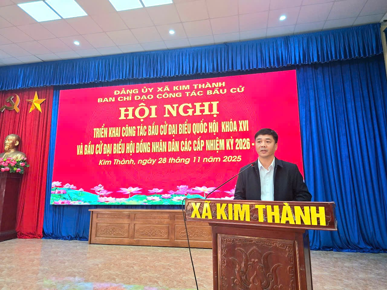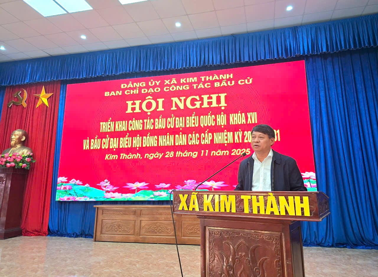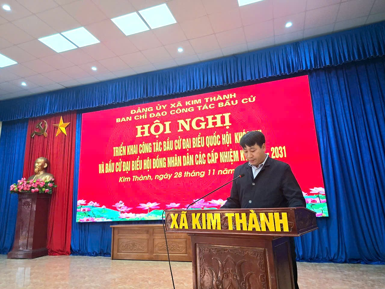 Phát biểu tại hội nghị, đồng chí Phạm Văn Khanh - Thành ủy viên, trưởng ban đô thị HĐND Thành phố ghi nhận sự chủ động của xã Kim Thành trong việc xây dựng kế hoạch, chuẩn bị các điều kiện phục vụ bầu cử theo đúng quy định. Lãnh đạo thành phố nhấn mạnh: Cuộc bầu cử đại biểu Quốc hội và HĐND các cấp là sự kiện chính trị trọng đại của đất nước, là đợt sinh hoạt dân chủ sâu rộng, thể hiện quyền làm chủ của nhân dân. Vì vậy, xã Kim Thành cần tiếp tục thực hiện nghiêm túc các bước theo luật định, bảo đảm tiến độ, chất lượng và an toàn tuyệt đối.