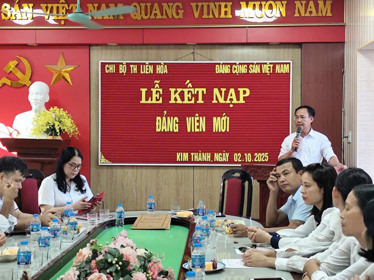 Đại diện Ban Thường vụ Đảng ủy xã chúc mừng và giao nhiệm vụ cho các đảng viên mới, đồng thời đề nghị chi bộ tiếp tục quan tâm, bồi dưỡng, tạo điều kiện để các đồng chí phát huy vai trò tiên phong gương mẫu, góp phần xây dựng chi bộ và Đảng bộ xã Kim Thành ngày càng trong sạch, vững mạnh.