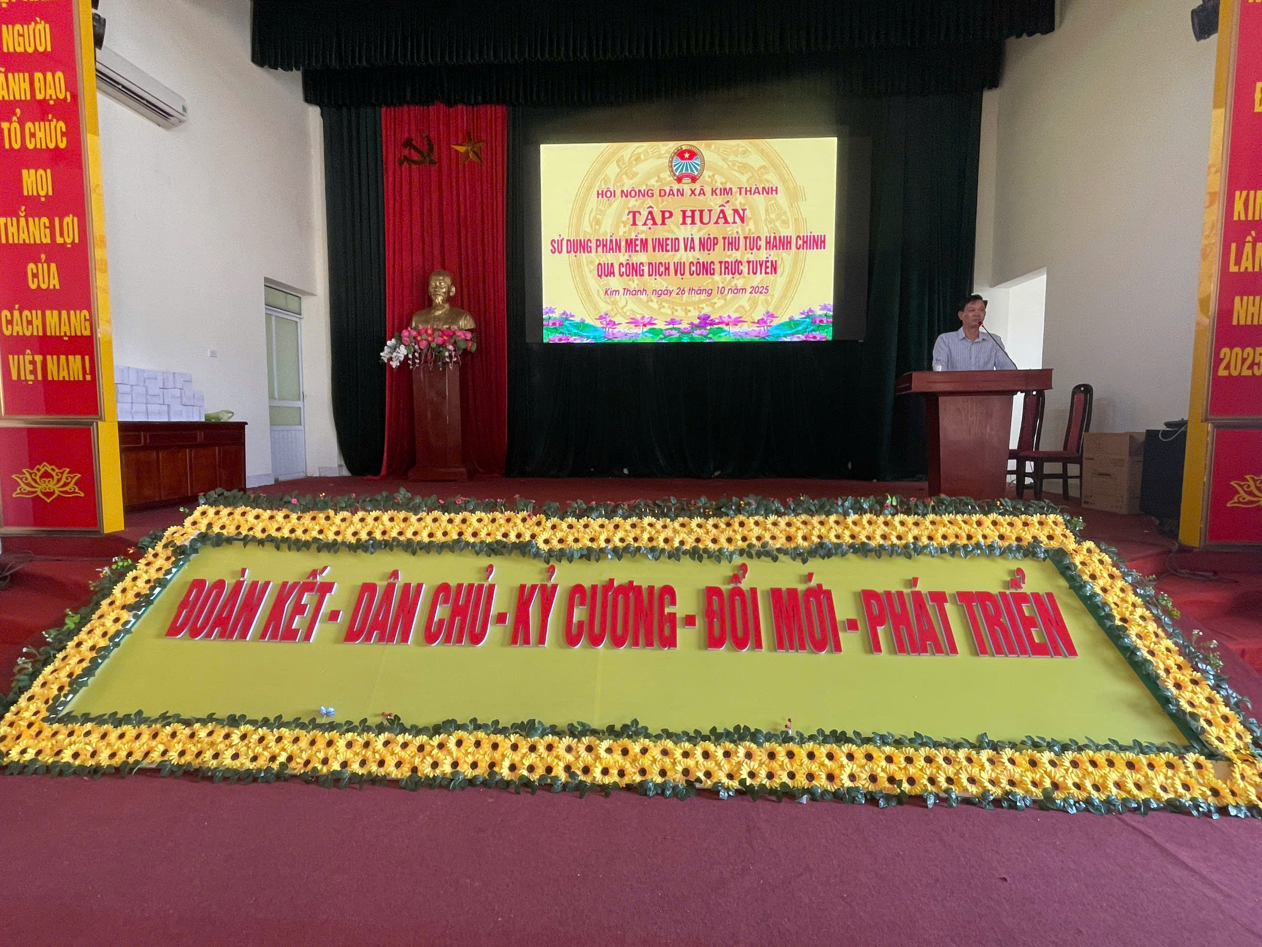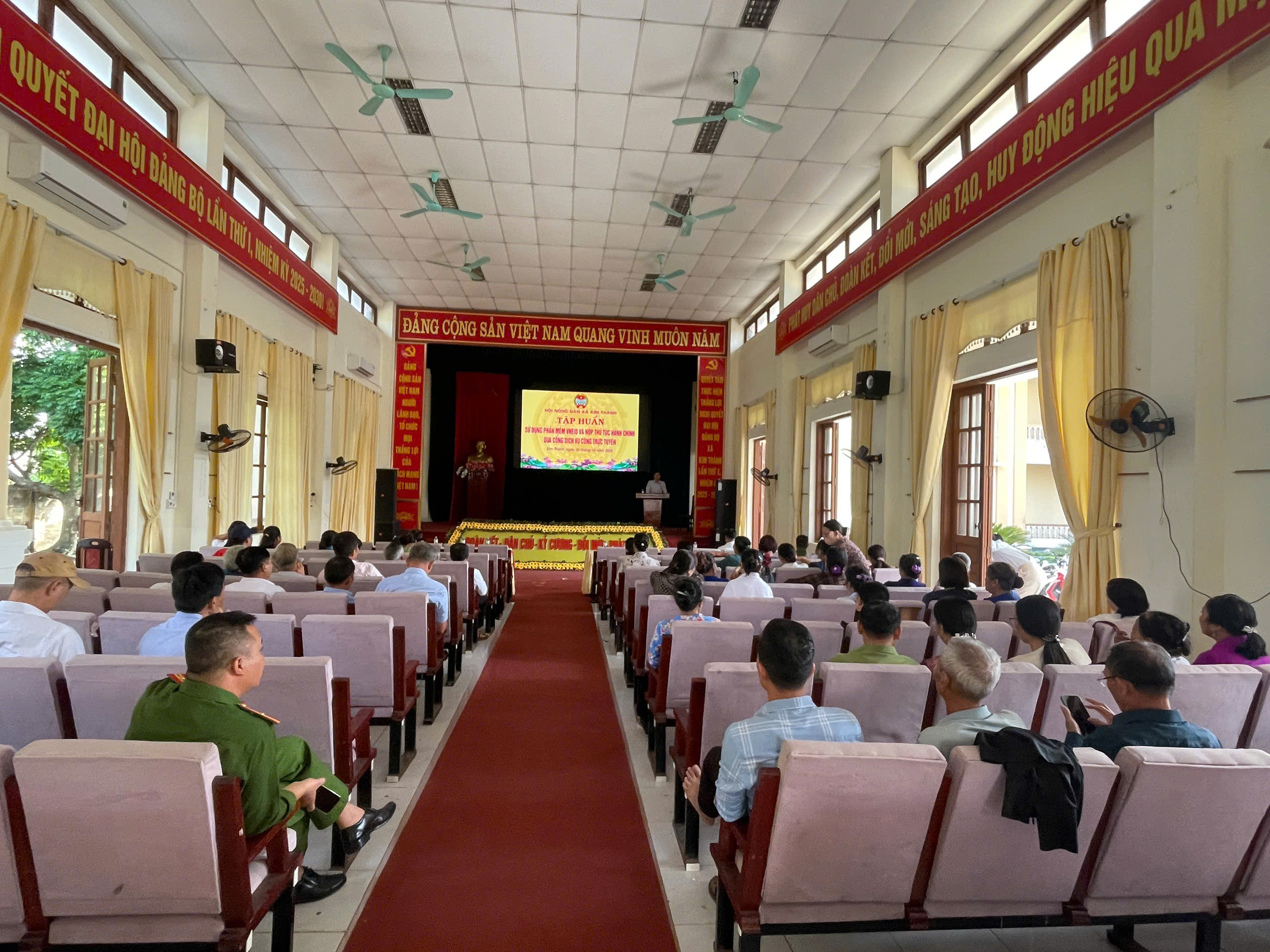 Thực hiện Kế hoạch chuyển đổi số năm 2025 của Hội Nông dân thành phố Hải Phòng và hướng dẫn của Hội Nông dân thành phố về việc đẩy mạnh ứng dụng công nghệ thông tin trong hoạt động Hội, sáng ngày 26 tháng 10 năm 2025, Kế hoạch của Đảng uỷ xã Kim Thành. Hội Nông dân xã Kim Thành đã tổ chức lớp tập huấn hướng dẫn hội viên, nông dân sử dụng phần mềm VNeID và nộp thủ tục hành chính qua Cổng dịch vụ công trực tuyến.