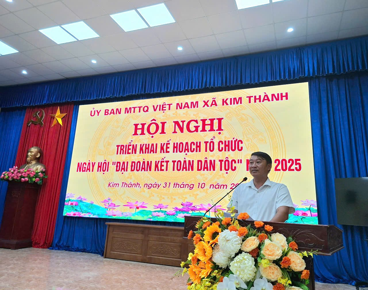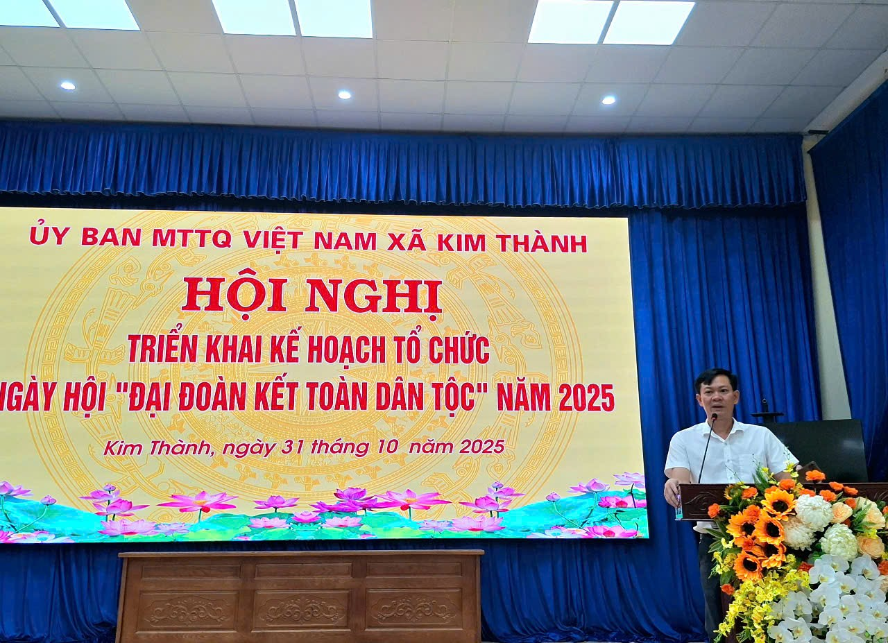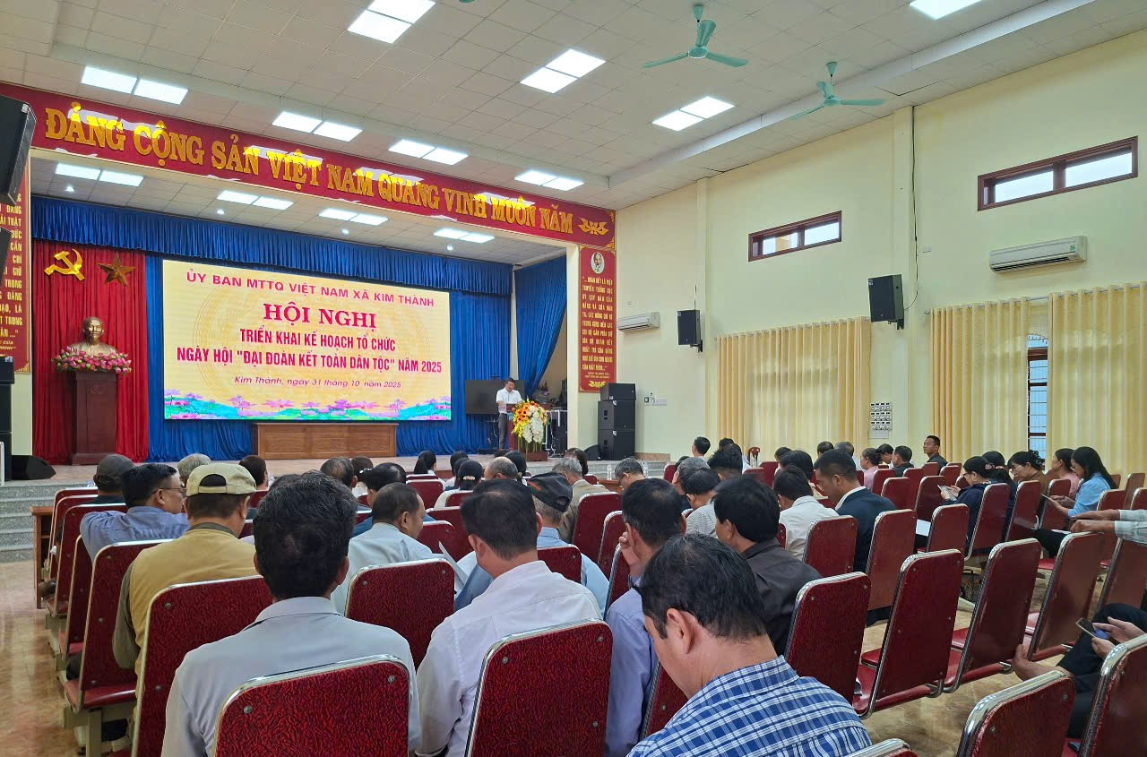 Thực hiện Hướng dẫn của Ủy ban MTTQ Việt Nam thành phố Hải Phòng về việc tổ chức Ngày hội “Đại đoàn kết toàn dân tộc” ở khu dân cư năm 2025, ngày 31/10/2025, Ủy ban MTTQ xã Kim Thành đã tổ chức hội nghị triển khai kế hoạch tổ chức Ngày hội “Đại đoàn kết toàn dân tộc” trên địa bàn xã.