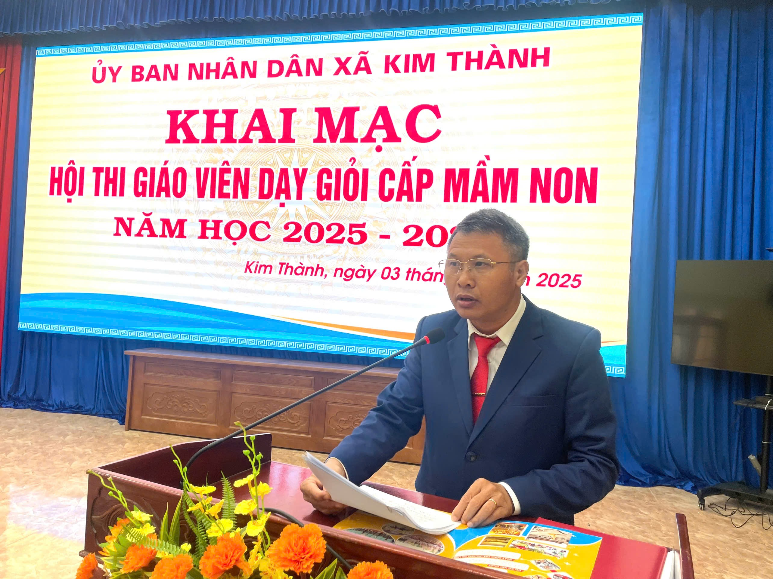 Phát biểu tại buổi khai mạc, đồng chí Nguyễn Văn Tình - Phó Chủ tịch UBND xã Kim Thành, khẳng định: “ Hội thi là hoạt động ý nghĩa nhằm khuyến khích, động viên đội ngũ giáo viên không ngừng học hỏi, sáng tạo trong công tác chăm sóc, nuôi dưỡng và giáo dục trẻ; đồng thời là dịp để các cô giáo thể hiện năng lực chuyên môn, trao đổi kinh nghiệm và lan tỏa tinh thần yêu nghề.”